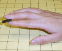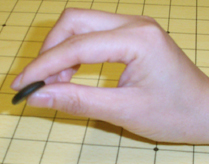 3.拿黑子的一方先行,双方交替落子。任何一方不可以连续下两手,否则判负。棋子有特殊的拿法,如下图: