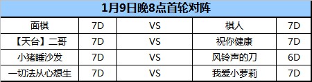 1月月赛报名结束 首轮对阵周四开战