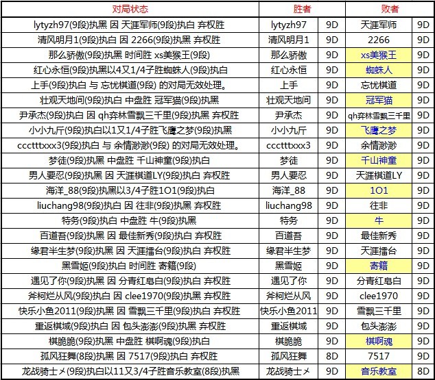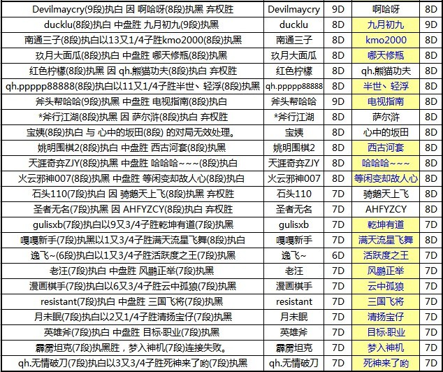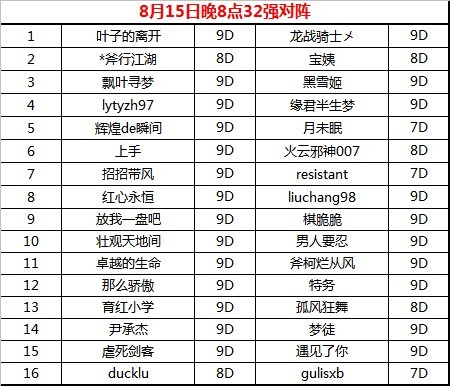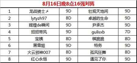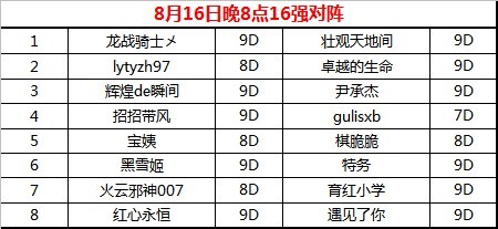 16强:龙战骑士メ;lytyzh97;尹承杰;招招带风;棋脆脆;黑雪姬;育红小学;遇见了你。