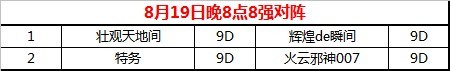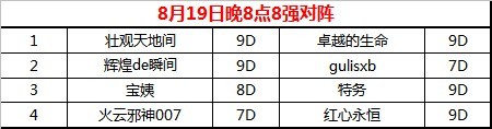 第六轮 8月19日 (周一)20:00  (8强赛)
