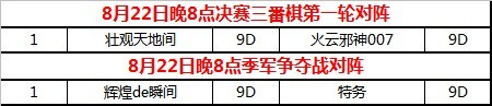 第九轮 8月23日 (周五)20:00  (决赛三番棋次轮)