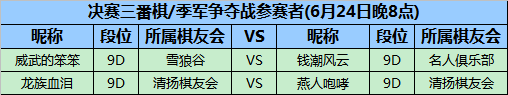 第九轮 8月24日 (周3)20:00 (决赛三番棋次轮)