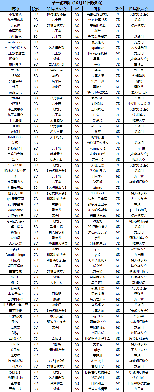 经过7天的报名7号晚10月赛报名已经结束。共有172玩家成功报名,9月棋魂高段对局积分榜前8名的棋手将直接进入32强(积分榜前8位里有未报名参加月赛的将依次向后顺延),有136人将参加11日晚上的第1轮,28人参加12日晚上的第2轮,32强战在10月16日晚8点拉开序幕。又是一番黑白大战值得期待,以下是本月月赛的报名情况和赛程安排。