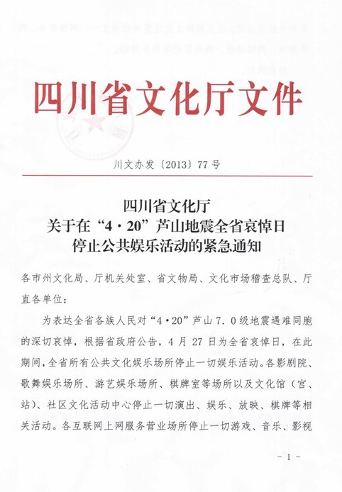2013年4月20日8:02,四川省雅安市芦山县发生7.0级地震,截至24日18时,地震已造成196人遇难、21人失踪、13484人受伤,四川全省200余万人受灾。应四川省政府号召,梦工厂旗下所有游戏将于27日停服一天,停服时间0~24点。