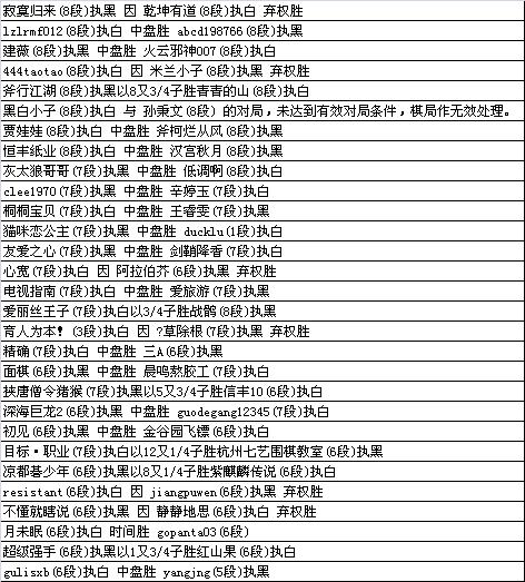 | 尹承杰(9段)执白 中盘胜 resistant(6段)执黑 |