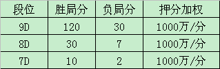 3、高段位对局时如果有任何一方没有被押分则对局双方的胜负分与押分加权都不计分。