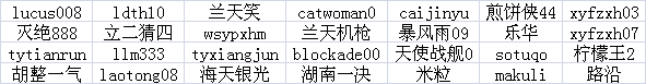 以上帐号永久封停,帐号资产清零,曾登录过以上帐号的电脑永久禁止登录棋魂。