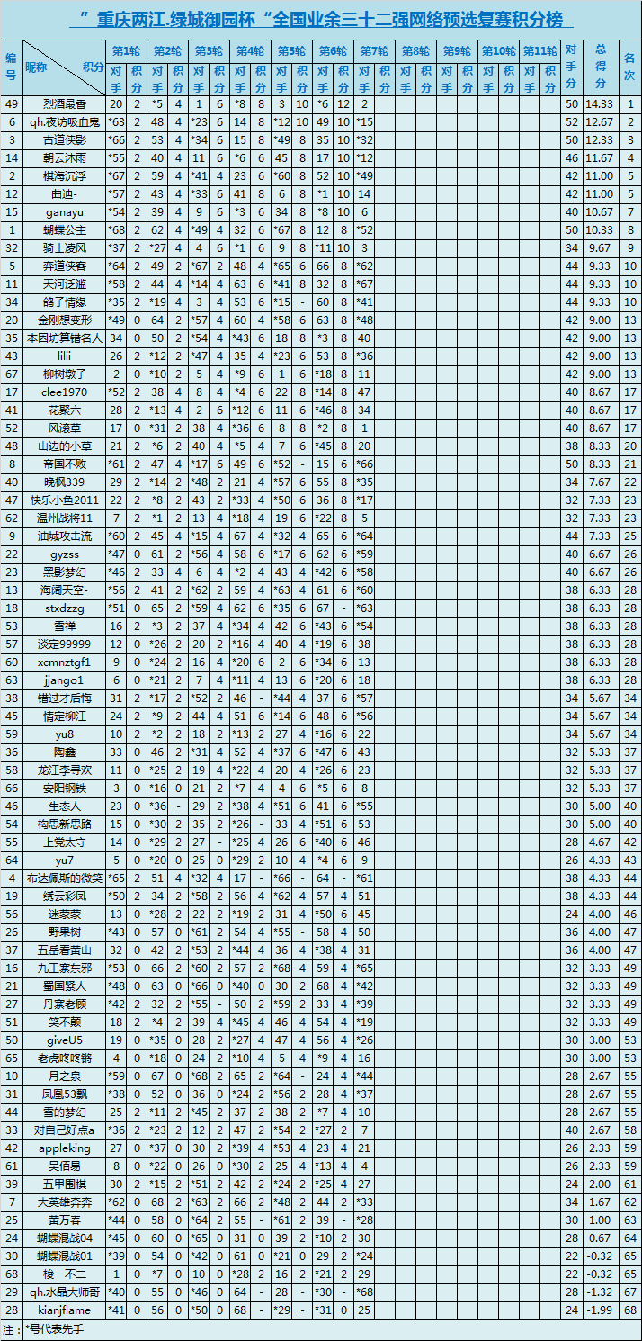 “重庆两江•绿城御园杯”网选复赛积分榜